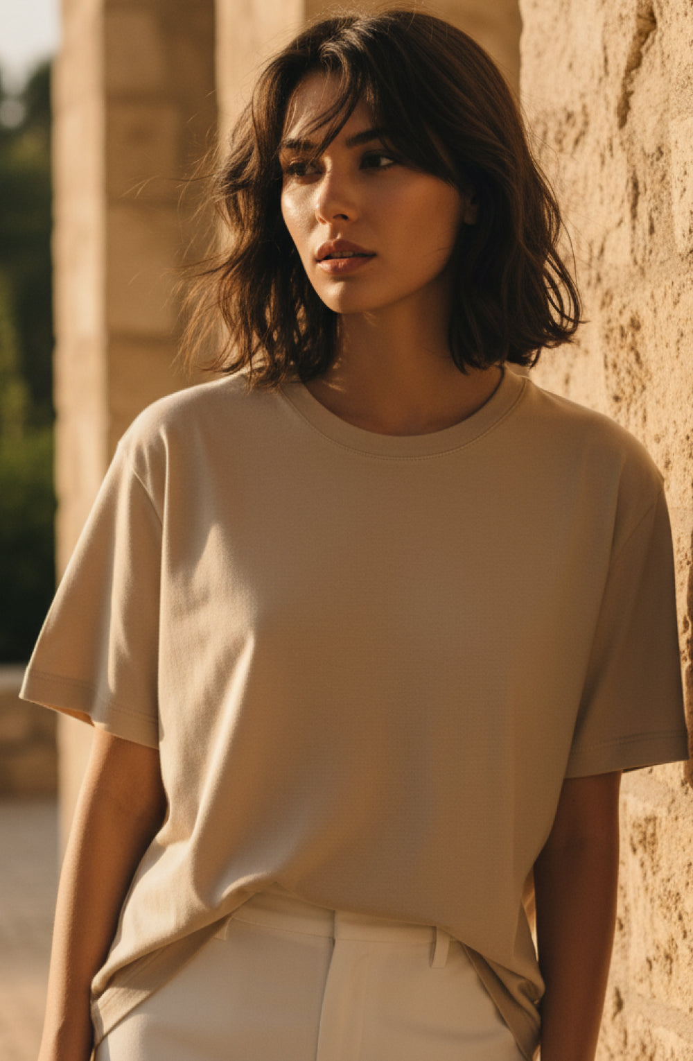 Crafted from 280 GSM Tencel looper knit, this men’s relaxed-fit tee draws inspiration from coastal calm and detail-driven design. The front features a small screen-printed artwork near the chest, while the back carries Sailing Club in rope embroidery with the remaining artwork in screen print. The contrast of techniques gives the piece subtle depth while keeping it soft and easy. Finished with flatlock seams, a ribbed neckline, and relaxed shoulders, it’s made for days that move at their own pace.